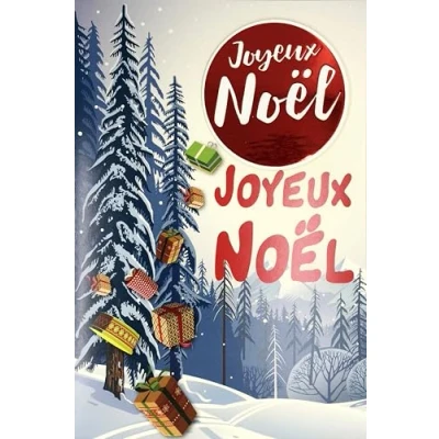 Afie 61 6035 Merry Christmas Card with Envelope and Collage Embossed Red Santa's Aviator in Gold Shiny Sparkling Glitter Gifts Falling from the Sky Snow Forest Trees