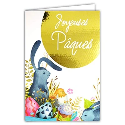 Afie 62 1015 Happy Easter Card with Envelope Closed Size 115 x 170 mm, Made in France, Design, Watercolour, Children