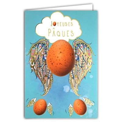 Afie 62 1017 Happy Easter Flying Eggs Card with Envelope Closed Size 115 x 170 mm Made in France Golden Snitch Shell Chick Cloud Sky Blue
