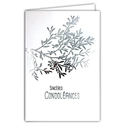 Afie 64 1040 Sincere Condolence Card Shiny Silver Olive Branch Peace Contemporary Tereavement Delivered with White Envelope Closed Format 11.5 x 17 cm