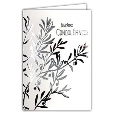 64-1041 Sincere Sympathy Card Olive Branch Tree Leaves Symbol Peace Wisdom Eternity Graphic Modern Contemporary Design Clean Grey Silver Silver Shiny Death Obsess Funeral Bereavement Made in France Printed on paper from sustainably managed forests PEFC Dimensions: 18 x 12 x 0.1 cm Paper Material Type