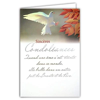 Afie 64 1073 Sincere Condolence Card with White Envelope Silver Text Dove Peace Soul