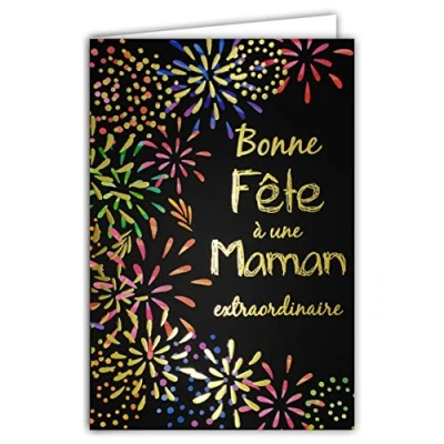 Afie 65 1287 Bonne Fête à an Extraordinary Mum Card in Shiny Gold with Envelope Closed Size 115 x 170 mm Made France Stars