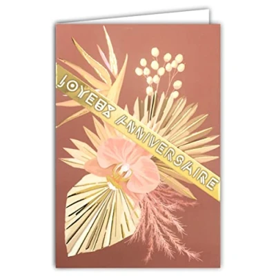 Afie 65 1307 Happy Birthday Card in Gold Glitter Chic Envelope Included Made France Bouquet of Flowers Orchid Paradise Pampa Pink Feminine