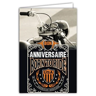 Afie 65 1345 Happy Birthday Card Born to Ride Route 66 USA American Los Angeles California Chicago Freedom Motorcycle Vintage Road Trip Envelope Included Made in France
