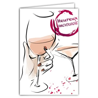 Afie 65 1352 Happy Birthday Card for Women Chic Pink Wine Female Cocktail Aperitif Bar Tasting Party Drink Afterwork Glass Envelope Included Made in France