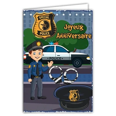 Afie 67 1253 Happy Birthday Card with Envelope for Young Boy who loves the Universe of Police Gendarmerie Defense Forces Justice Peace Car Rotating Lights Handcuffs