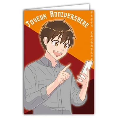 Afie 67 1255 Happy Birthday Card Envelope Young Boy Teens Who Loves the Japanese Universe Nippon Heroes Manga Comic Sun Rising Screen Smartphone Technologies Orange/Red Burgundy