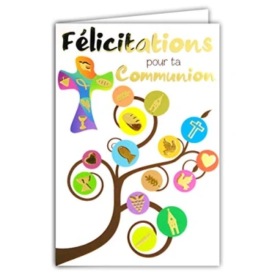 Afie 68 1203 Congratulations on Your Holy Communion Gold Symbols Shiny Cross Catholic Wheat Bread Ostie Cluster Grape Wine Church Candle Party Spring