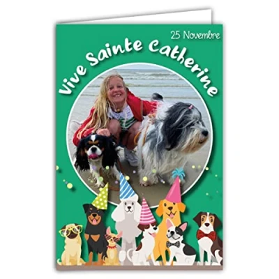 Afie 68 1307 Card with Envelope Vive Saint Catherine Hats 25 November Happy Feast for Little Girl Who Love Dogs Walking Sand Sea Green Collectible Trading Recreation