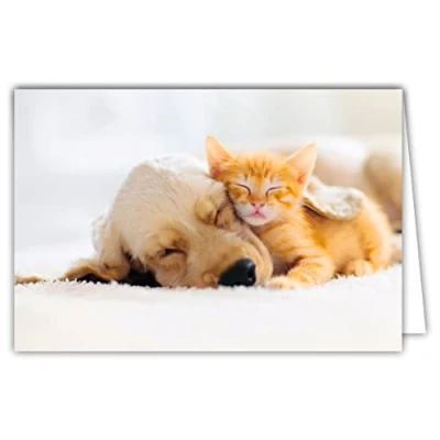 Afie 68 4002 White Interior Card with Envelope Ginger Kitten Dog Puppy Sleeping Soft Colours Cocooning Relaxing Relaxation at Home Farniente Siest Calm Rest for You