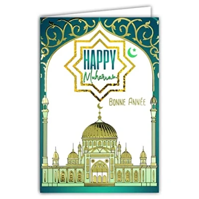 Afie 68 9004 Happy Muharram Year Islamic 1st Month Moon Muslim Calendar Hasan Husayn Crescent Mosque Gold Shiny White Envelope Size 17.5 x 12 cm