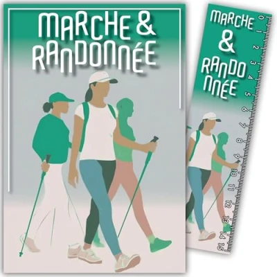AFIE 69 1025 Nordic Walking Map Hiking Sports with Bookmark/Ruler 15 cm Paper and White Envelope Size 12 x 17.5 Birthday or Party Gift Made in France