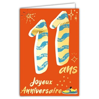 Afie 69 2411 11th Birthday Card in Shiny Gold Embossed Textured for Child Boy Girl Coloured Text Suitable Age Inside Envelope Included Made France ColourAges