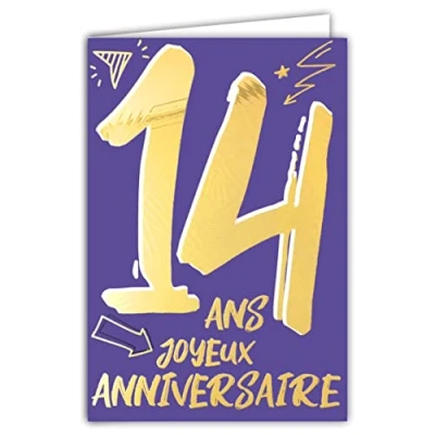 Afie 69 2414 14th Birthday Card in Shiny Gold Embossed Textured for Teens Boys Girls Coloured Text Suitable Age Inside Envelope Included Made France ColourAges