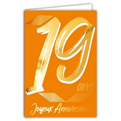 Afie 69 2419 19th Birthday Card in Shiny Gold Embossed Textured for Men and Women Coloured Text Suitable Age Inside Envelope Included Made France ColourAges