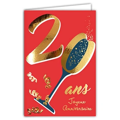 Afie 69 2420 20th Birthday Card in Shiny Gold Embossed Textured for Men and Women Coloured Text Suitable Age Inside Envelope Included Made France ColourAges