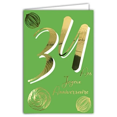 Afie 69 2434 34th Birthday Card in Shiny Gold Embossed Textured for Men and Women Coloured Text Suitable Age Inside Envelope Included Made France ColourAges
