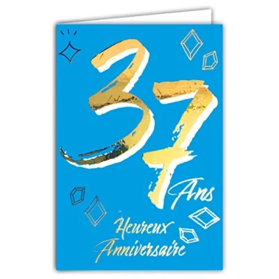 Afie 69 2437 37th Birthday Card in Shiny Gold Embossed Textured for Men and Women Coloured Text Suitable Age Inside Envelope Included Made France ColourAges