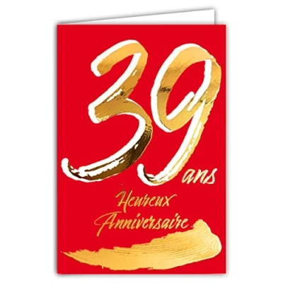 Afie 69 2439 39th Birthday Card in Shiny Gold Embossed Textured for Men and Women Coloured Text Suitable Age Inside Envelope Included Made France ColourAges