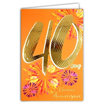 Afie 69 2440 40th Birthday Card in Shiny Gold Embossed Textured for Men and Women Coloured Text Suitable Age Inside Envelope Included Made France ColourAges