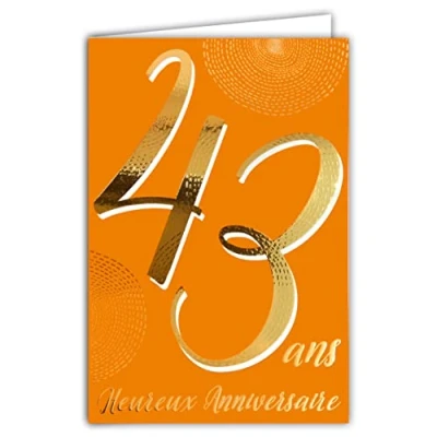 Afie 69 2443 Age 43 Birthday Card in Shiny Gold Embossed Textured for Men and Women Coloured Text Suitable Inside Envelope Included Made France ColourAges