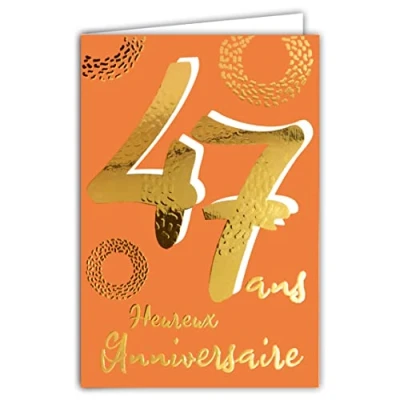 Afie 69 2447 Age 47 Birthday Card in Shiny Gold Embossed Textured for Men and Women Coloured Text Suitable Inside Envelope Included Made France ColourAges