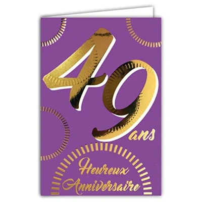 Afie 69 2449 49th Birthday Card in Shiny Gold Embossed Textured for Men and Women Coloured Text Suitable Age Inside Envelope Included Made France ColourAges