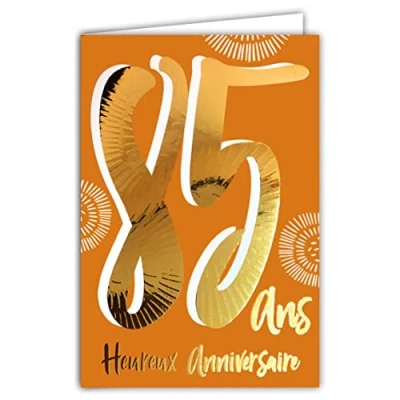 Afie 69 2485 85th Birthday Card in Shiny Gold Embossed Textured for Men and Women Coloured Text Suitable Age Inside Envelope Included Made France ColourAges