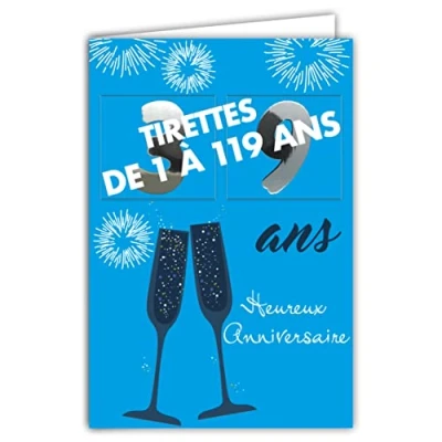 Afie 69 2504 Birthday Card with Pulls, Age from 1 to 119 Years, Shiny Silver for Men and Women Coloured Text Inside Envelope Included Made in France Colourages