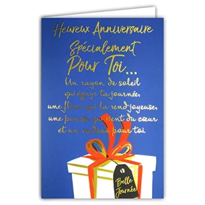 Afie 69 3016 Birthday Card with Large Text in Gold Plated Words That Shine; Comes Matching Coloured Envelope; Closed Size 11.5 x 17 cm; Made France; Gift; Blue;