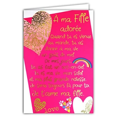 Afie 69 3039 Card for My Daughter with Large Text in Gold Plated Matching Envelope Closed Size 11.5 x 17 cm Made France