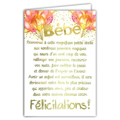 Afie 69 3049 Pink Card Birth Charity Baby Girl with Gold Gilding Words and Shiny Envelope; Comes Matching Envelope 11.5 x 17 cm Format Closed Made in France