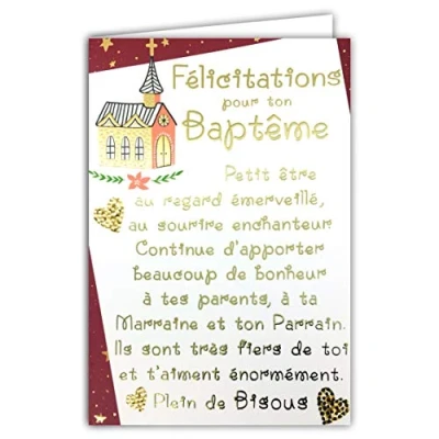 Afie 69 3051 Congratulations Card Baptism Godfather Godmother Text in Gold Plated with Matching Colour Envelope Closed Size 11.5 x 17 cm Made France