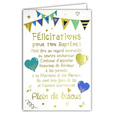 Afie 69 3052 Congratulations Card Baptism Godfather Godmother Words in Gold Plated with Matching Colour Envelope Closed Size 11.5 x 17 cm Made France