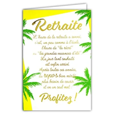 Afie 69 3057 Depart en Retirement Card with Large Text in Gold Plated Matching Envelope Closed Size 11.5 x 17 cm Made France