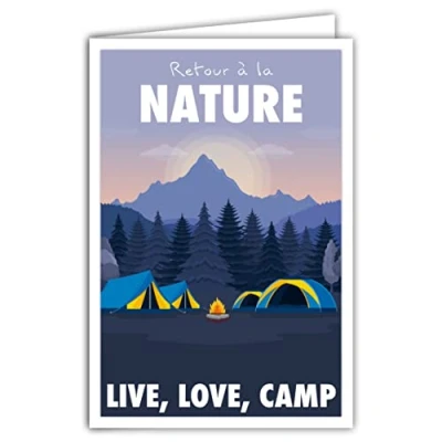 Afie 69 4337 Back to Nature Live Love Camp Card with Envelope for Campers, Vacantors, Adventurers, Retired Scouts, Mini Posters, 17 x 11.5 cm, Retro Vintage Trees