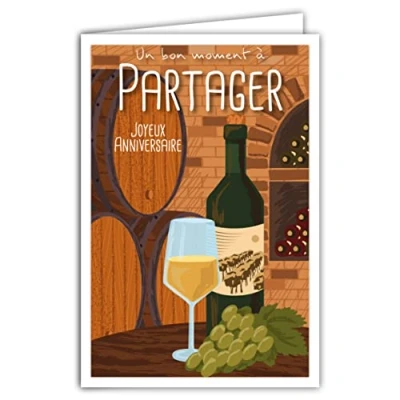 Afie 69 4358 Happy Birthday Card with Envelope Mini Poster Format 17 x 11.5 cm Retro Vintage Style Graphic Illustration A Good Time to Share Wine Bar and Oenology Tasting