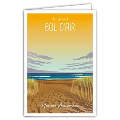 Afie 69 4362 Happy Birthday Card with Envelope Mini Poster 17 x 11.5 cm Retro Style Vintage Graphic Illustration Large Air Bowl Sea Ocean Sand Beach Dunes Ganivels