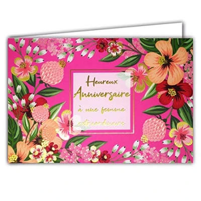 Afie 69 5131 Happy Birthday Card with Envelope Closed Size 115 x 170 mm Made in France, Horizontal, Flower, Pink