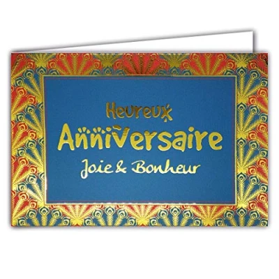 Afie 69 5136 Happy Birthday Card with Envelope Closed Size 115 x 170 mm Made in France Horizontal Feathers Peacock Blue