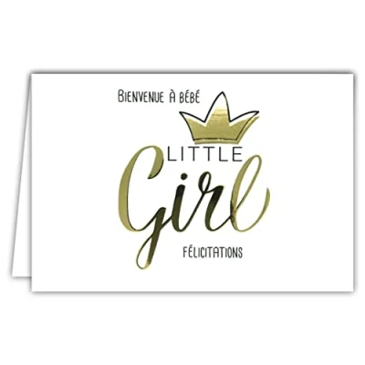 AFIE 69 5152 Welcome to Baby Girl Glossy Gold Letters for Birth or Adoption Princess Crown Horizontal Format with White Envelope 17.5 x 12 cm