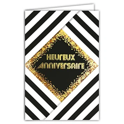 Afie 69 7092 Happy Birthday Card in Shiny Gold with Envelope Closed Format 115 x 170 mm; Made France; Black and White;
