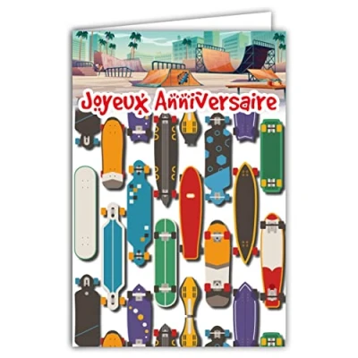 Afie 69 8036 Happy Birthday Card Skateboards Skatepark Design with Envelope Format 12 x 17.5 cm 300 g Paper from sustainable forests. Made in France