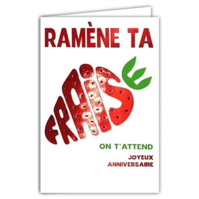 AFIE 69 9024 Happy Birthday Card Fruity Bring Back Your Strawberry Shiny Red + Envelope 12 x 17.5 cm We Wait You Word in the Shape of a Spring Fruit Creation Print Made France
