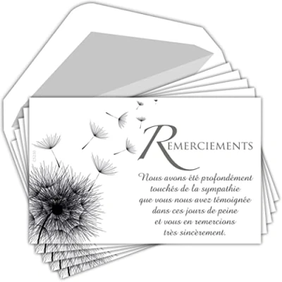 EASILY AND SIMPLICITY FOR THESE DIFFICULT TIMES: Our set of cards with envelopes is designed to simplify your thank you process in these trying moments. These ready-to-use cards with a message already written offer you a respectful and simple way to convey your gratitude. FRIENDLY AND APPROPRIATE FOR ALL CEREMONIES: Our bereavement thank you cards are designed to suit all forms of funeral and funeral, providing a respectful and appropriate way to thank family, friends and acquaintances for their presence and support. Simple and elegant design: cards designed to convey your feelings with dignity. Their small size (8.5x13.5cm) is ideal for expressing your thanks and gratitude to those who have supported you. Ready to use with envelopes included: To make it easier for you to get through these challenging times, each card comes with a quality white envelope. This complete set allows you to send your condolence messages without any additional delay. Made in France. Our thank you cards are printed on premium matte paper, offering exceptional texture and hold. Single sided printing will allow you to add a custom word on the back, making each card unique and sincerely touching.