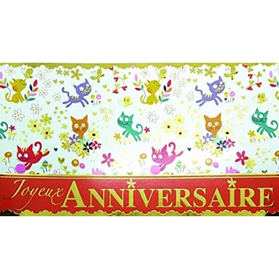 Afie Card Panoramic Happy Birthday Gold Gilt Shiny Cats Kittens Players Field Flowers Butterflies Hearts Cute