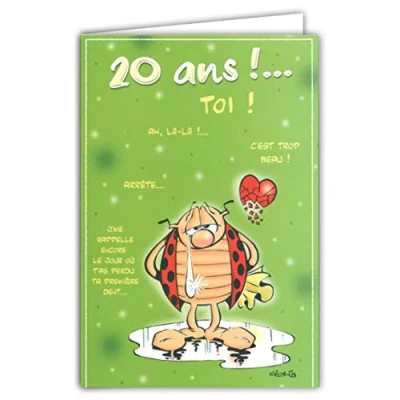 Afie CD Cox 503 Card with Envelope 20 Years It's The Super Mega Big Festival! Happy Birthday Young Adult Humorous Illustration Gotlib Ladybird Closed Format 17 x 11.5 cm