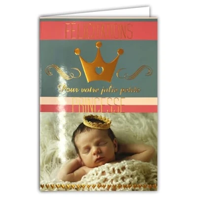 AFIE Congratulations Card Birth or Adoption Baby Girl Pretty Little Princess Crown Hearts in Gold Envelope Pink 12 x 17.5 cm Fairy Tale Tender Warm Thoughts Cocooning 66 1027 A