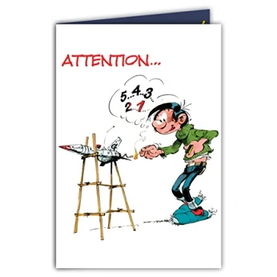 Afie GLCT 0242 Gaston Lagaffe Happy Birthday Card Fused Starry Night Artificator Show, Humorous Party, Closed Format 17 x 11.5 cm with Illustrated Envelope Included Made in France
